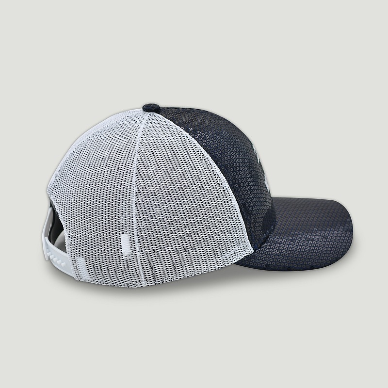The '47 Brand Women's Dazzle Hat in Navy is a classic adjustable fit strap back hat. Hat features embroidered US Open logo in the front with all around navy and white sequins.