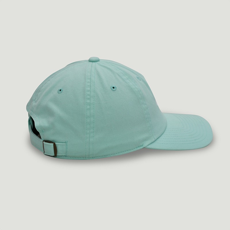 100% cotton washed unstructured crown with curved brim, matching tape and sweat and adjustable self-fabric backstrap.